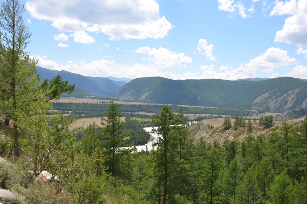 От села Джазатор едем на лошадях по грунтовой лесной дороге, которая выходит к реке Аргут и дальше проходит по правому ее берегу. Дорога поднимается высоко над рекой, что позволяет наблюдать красивые пейзажи: степь Самаха, устье реки Кок-Суу, отроги Южно-Чуйского хребта.Продолжаем движение по лесной дороге до села Аргут, где переправимся по мосту на левый берег реки Аргут. Дальше по дороге, которая поначалу взбирается вверх на безлесные горные отроги, где сухой и каменистый пейзаж напоминает полупустыни Монголии, затем спускается к реке Аргут, на берегах, которого растет тополиная роща. Дальше наш путь проходит по лугам с высокой травой до реки Кулагаш. Ночевка на берегу реки Кулагаш.