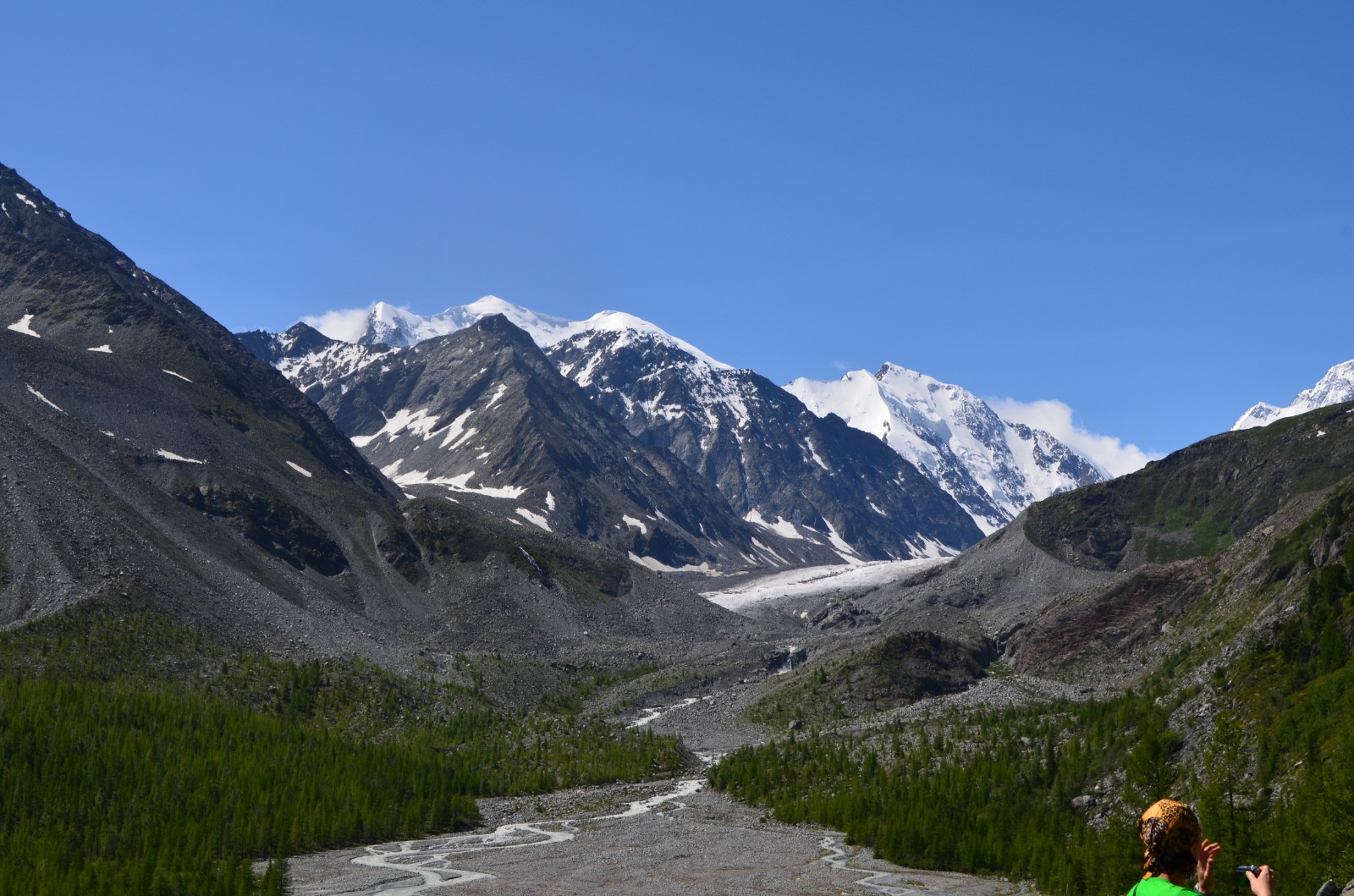 Восточный склон Белухи представлен ее самым большим ледником Менсу, который дает начало реке Иедыгем, большому левому притоку Аргута. Ледник спускается с Восточной вершины Белухи между двумя ее отрогами: один из которых является водоразделом с Ак-кемом, другой - с Берелью. Время выхода 6-7 часов.