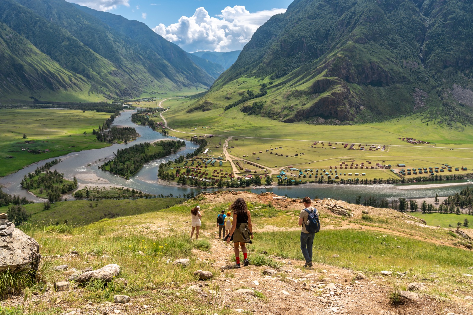 Завтрак в кафе. Освобождение номеров. Выезд на маршрут по Улаганскому тракту, который расположился вдоль множества озер. Первой остановкой на пути станут популярные Красные ворота, место где дорога пробита сквозь скалы красного цвета. Далее гостей Алтая ждет посещение Улаганского перевала – самого высокого автомобильного перевала в Республике, его высота над уровнем моря 2080 метров, увидят озеро Киделю. Обед в кафе с.Улаган, смена автобуса на транспорт повышенной проходимости, продолжение путешествия, следующим объектом посещения станут курганы Пазырыкской культуры, где участникам маршрута расскажут о раскопках курганов и культуре захоронения древних жителей региона. Доехав до перевала Кату-Ярык группа покидает автомобиль и любуется долиной реки Чулышман с высоты птичьего полета. Запечатлев на память красивые виды – туристы спускаются с перевала пешком (3,5 км) по технике безопасности. Чулышманская долина - место. которое совсем недавно стало развиваться в плане инфраструктуры, здесь нет связи и линий электропередачи. Свет и вода продается благодаря генераторам в вечернее время. Размещение на туркомплексе, ужин, баня.