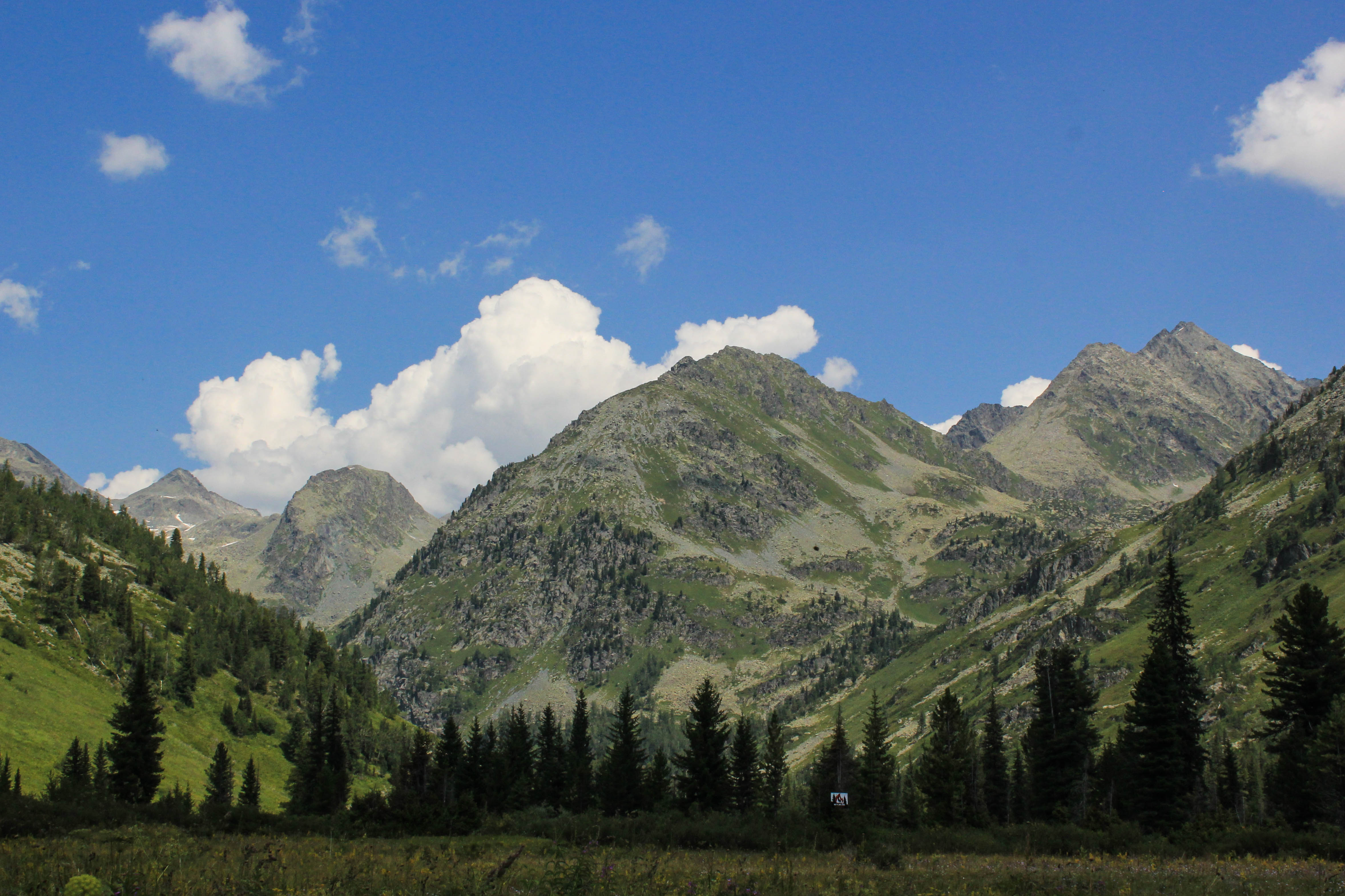 Завтрак. Радиальный выход на озеро и водопад Куйгук. С утра радиальный выход на лошадях без арчимаков и драйбегов в долину реки Куйгук по тропе которая идет сначала вдоль правого берега реки Мульта, затем уходит в долину реки Куйгук. Оставляем коней не далеко от водопада Куйгук и идем пешком в его сторону, затем идем до самих озер, преодолев курумник и небольшой подъем в гору. Куйгукские озера — два высокогорных озера (Верхнее и Нижнее) на высоте 2030 м. над уровнем моря. Устраиваем фотосессию на берегу озер, затем возвращаемся к месту где оставили коней, устраиваем перекус, после чего возвращаемся к лагерю на берегу Нижнего Мультинского озера.Баня.