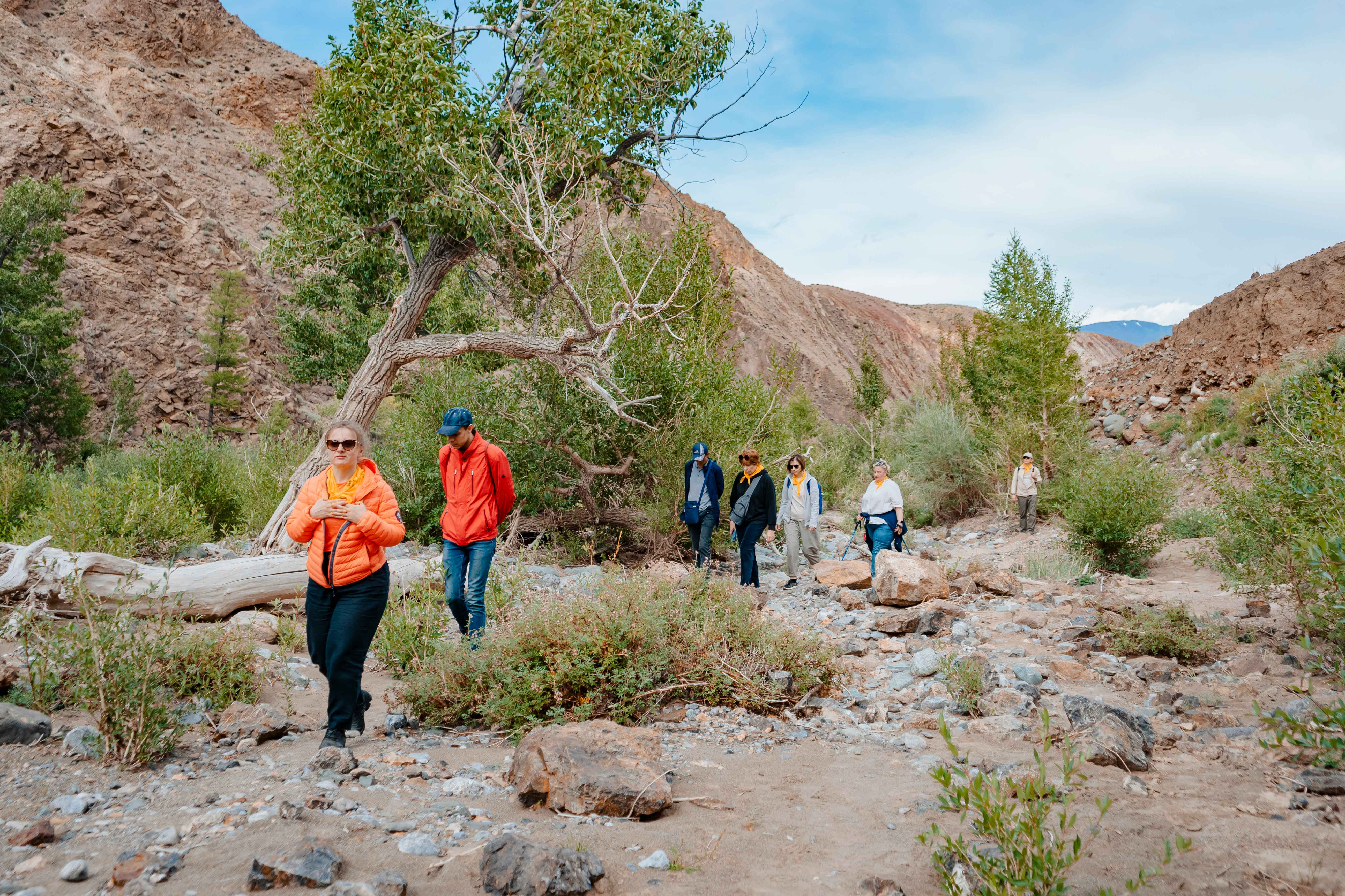 Этот день начнём с горячего завтрака на чистом воздухе, чтобы набраться сил для трекинга. Нас ждёт подъём к «Небесному озеру», скрытому высоко в горах. Путь будет непростым, с большим перепадом высот, но вид, который откроется на вершине, сто́ит любых усилий. Далее мы двигаемся на «Кокоринский Марс» (долина Кызыл-Чин). Ярко-красные, оранжевые и фиолетовые склоны создают полную иллюзию пребывания на другой планете. Обед-пикник среди этих фантастических пейзажей станет одним из самых запоминающихся. После спуска и обеда двинемся в Кош-Агач — административный центр самого большого и отдалённого района Республики Алтай. По дороге заглянем в музей теленгитов, чтобы глубже понять историю и быт этого народа, составляющего значимую часть местного населения. А вечером, под бесконечным звёздным небом, нас ждёт магическое действо — выступление кайчи. Алтайское горловое пение под аккомпанемент топшура — это не концерт, а путешествие вглубь веков, в самые истоки человечества.
