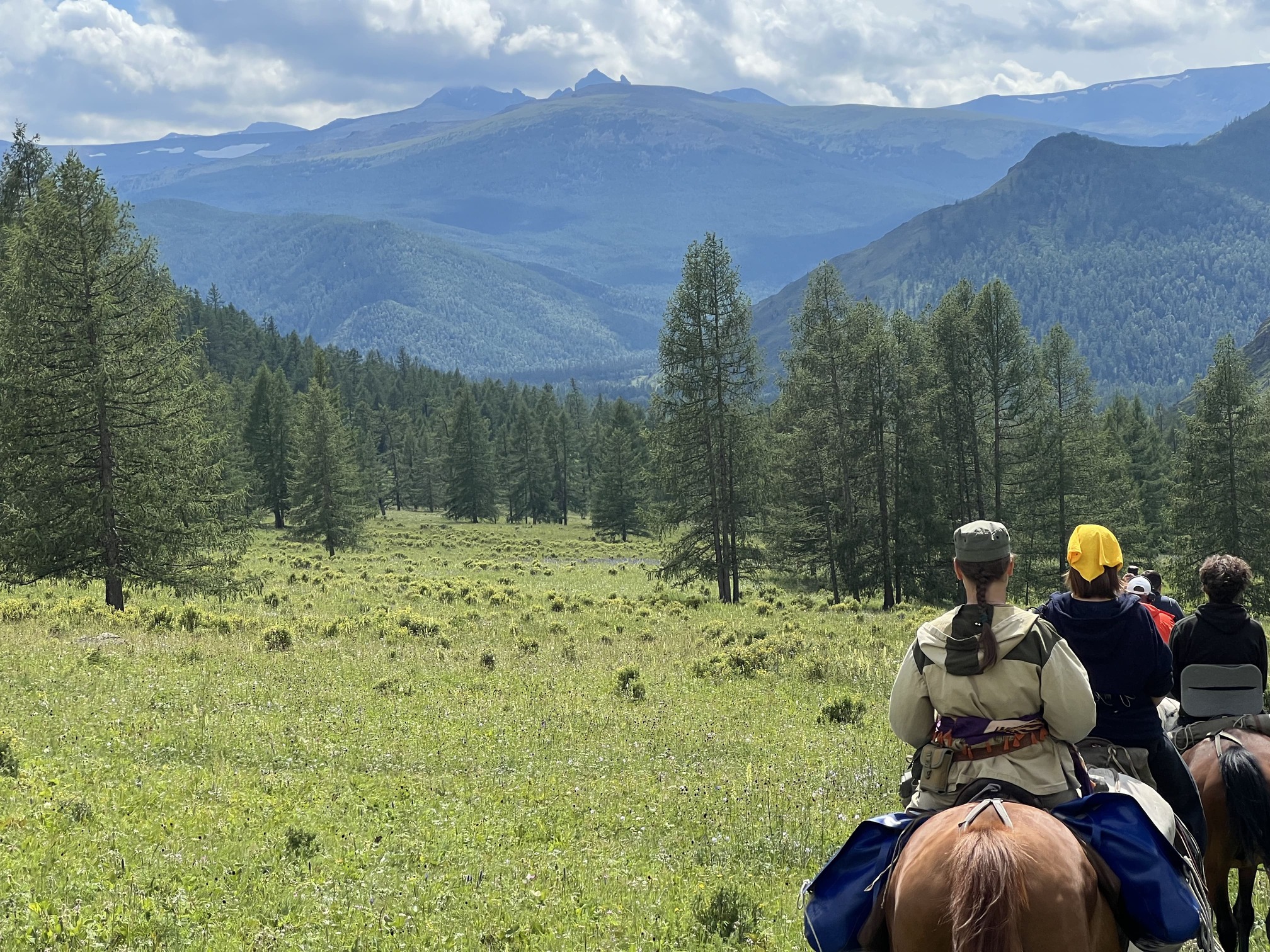 4-ре радиальных выхода на конях из одной базы «Кордон» в горах (раньше это и был кордон, когда там был национальный парк). Все выходы, непохожие, со своим колоритом. В двух из них пешие подъёмы, крутоватые, но короткие. Очень много новой информации, которой раньше не знал плюс практические навыки работы и ухода за конями – весьма полезно и интересно. Приятно удивил хозяин Кордона – таких основательных и серьёзных алтайцев встречал нечасто (кстати, он бывший егерь с этого кордона). Еда простая, но вкусная.
