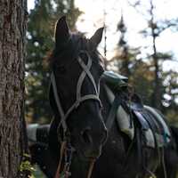 - На крутых склонах, каменных россыпях и снежных участках коня ведут в поводу;